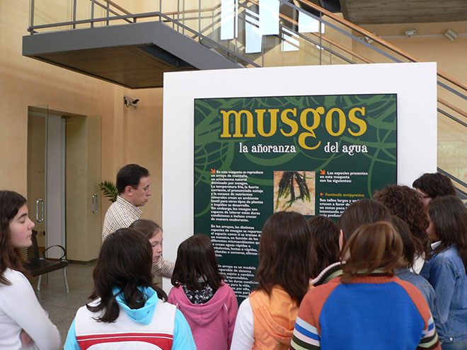 Una gran maqueta con musgos vivos, en crecimiento activo, que representa un ecosistema dominado por musgos: un arroyo de montaña.