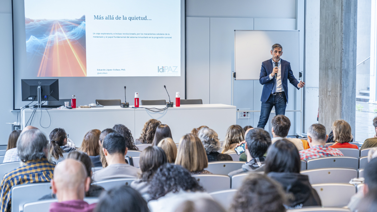Y pese a todo, no solo sigue enamorado de la ciencia y la investigación, sino que no duda en hacer proselitismo con el alumnado de la UR: «¿Qué les digo? Que no hay nada más sexy ni más cool que la ciencia, porque arrancar secretos de la naturaleza cada día es emocionante. Pero hay que saber gestionar la frustración, porque fallamos todos los días… aunque el día que acertamos es increíble», ha completado López-Collazo, director científico del Instituto de Investigación Sanitaria del Hospital La Paz (IdiPAZ) durante una década y donde ahora dirige científicamente su Biobanco.